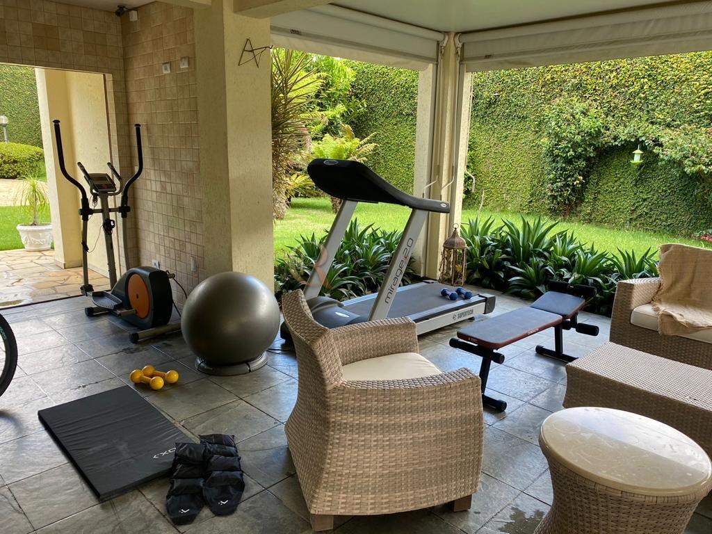03 salas independentes, duas destas salas com varanda e vista para piscina, sala de estar com lareira e home theater e lavabo;