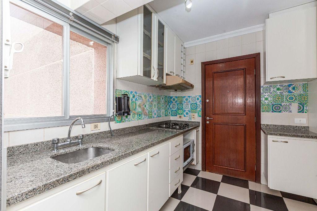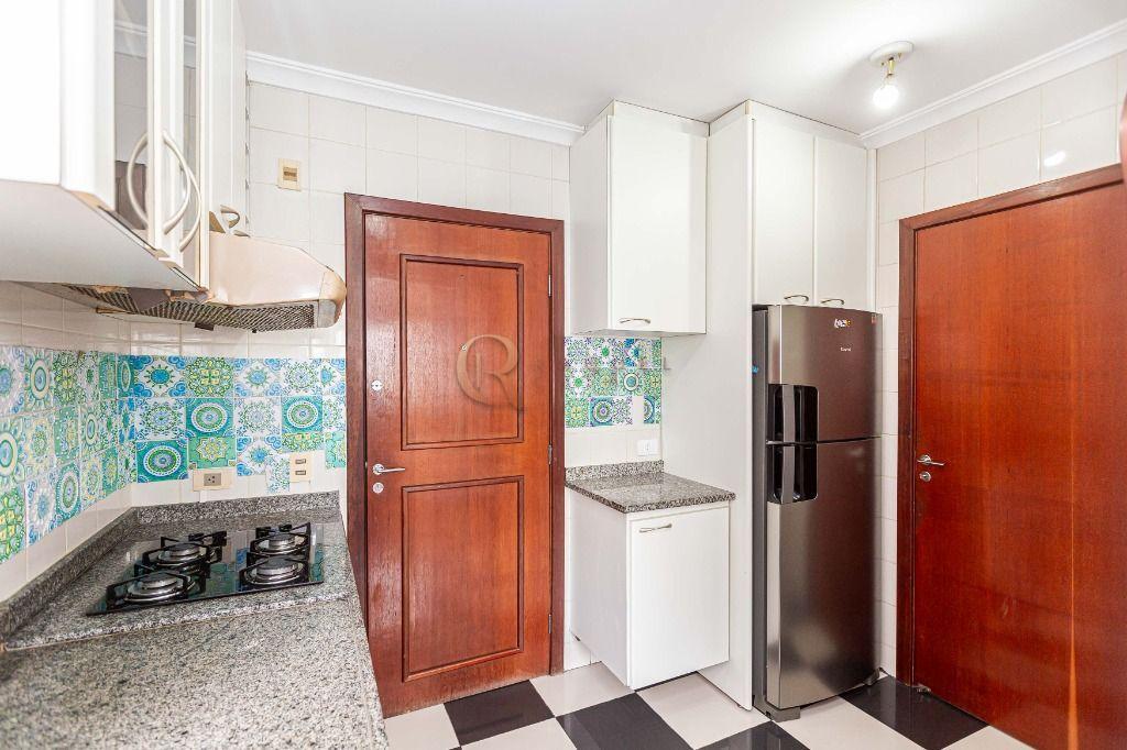 Cozinha planejada com armários sob medida, acompanhada de área de serviço e banheiro de serviço (transformado em despensa).