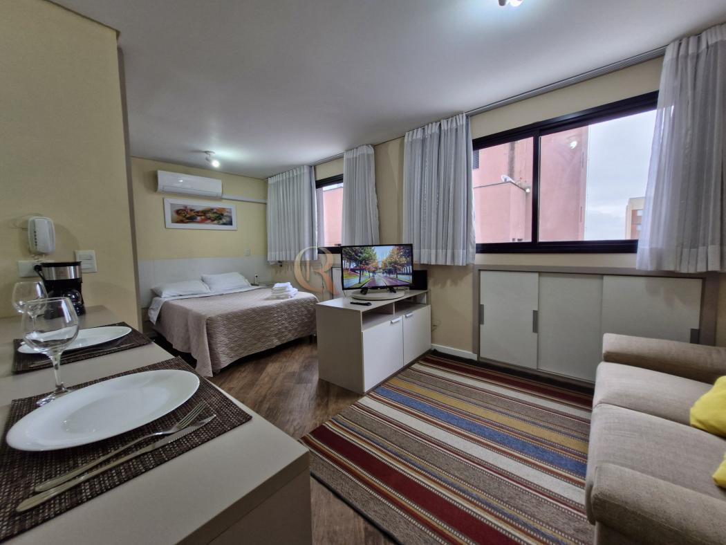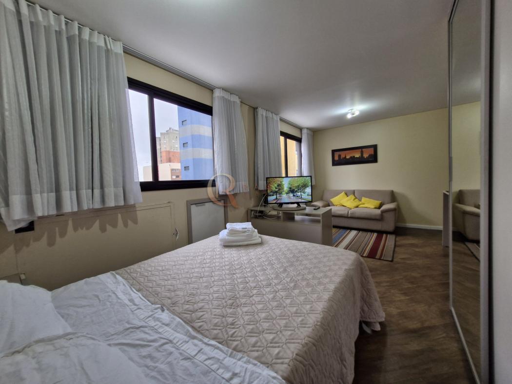 Studio 100% mobiliado, com mobília de alto padrão, em edifício condomínio clube ao lado do Jardim Botanico. Esse studio, localizado no último pavimento do Ed. Rossi 145 fica na melhor posição do prédio, pois, diferente de outras unidades, esse foi escolhido a dedo pelos vendedores para ficar no vão entre os edifícios ao lado. Ou seja, é extremamente ensolarado e possui uma ampla vista da cidade. O STUDIOTamanho: 33m²Ar Codicionado: simJanelas: (2) com vista para cidade:Mobilia: Sim (Móveis planejados da marca Criare, cama BOX, Eletrodomésticos de qualidade, sofa);Andar: 12º O EDIFICIO: ROSSI 145 - R. Agamenon Magalhães 145 - Cristo Rei - Curitiba - PRPiscina: Coberta / aquecida;Academia: completa, com equipos de pilates;Lavanderia: sim, com loungeEspaço Gourmet: sim, 2 no último andar;Portaria 24 horas: Sim. A unidade encontra-se locada e é perfeita para investidores.