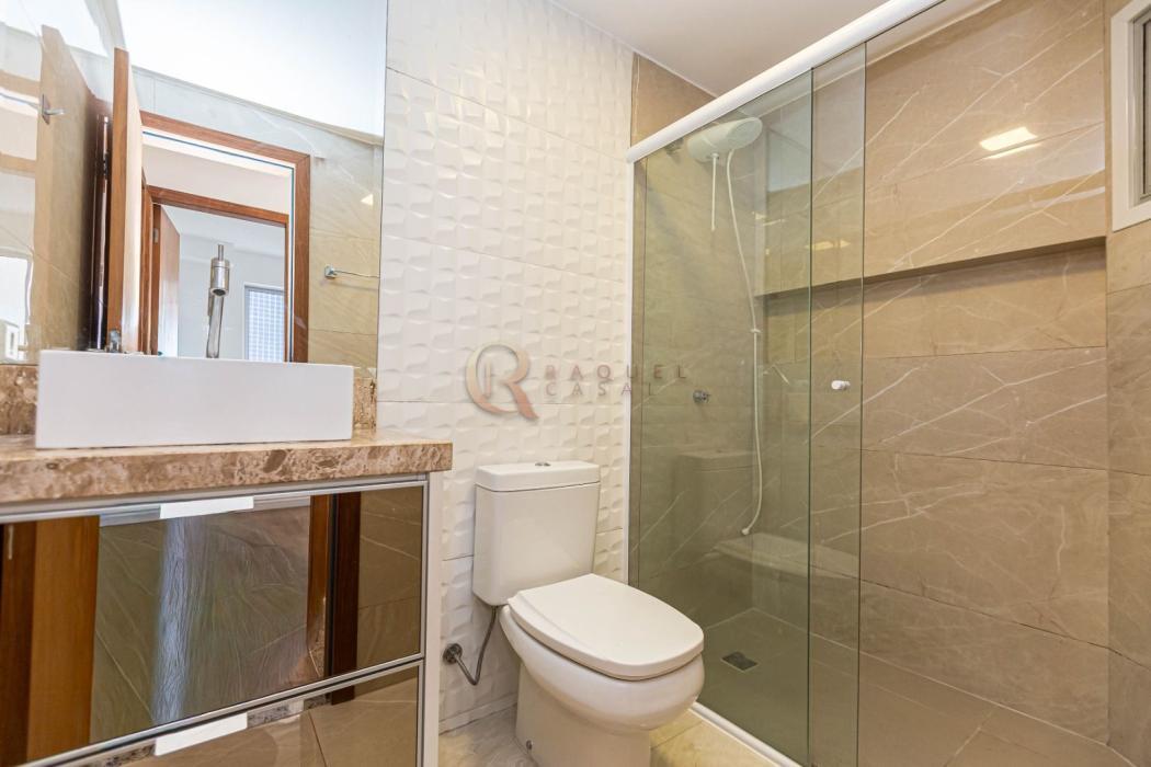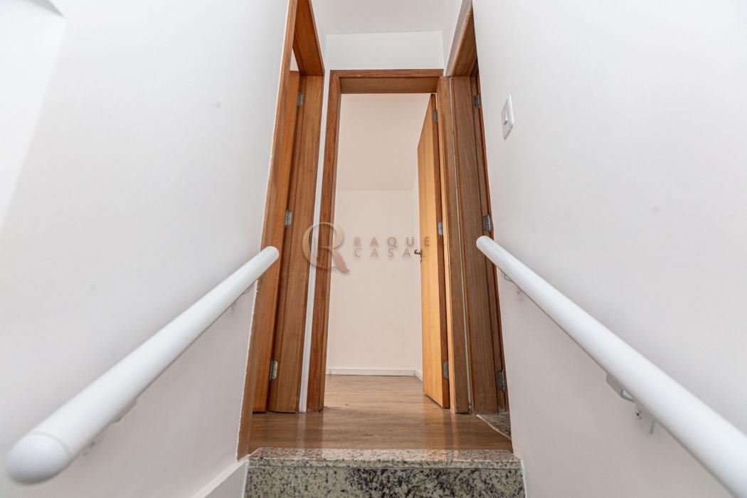 No andar superior temos 2 dormitórios com ótimo tamanho, piso em laminado de madeira e um banheiro completo e reformado, com armário e box.