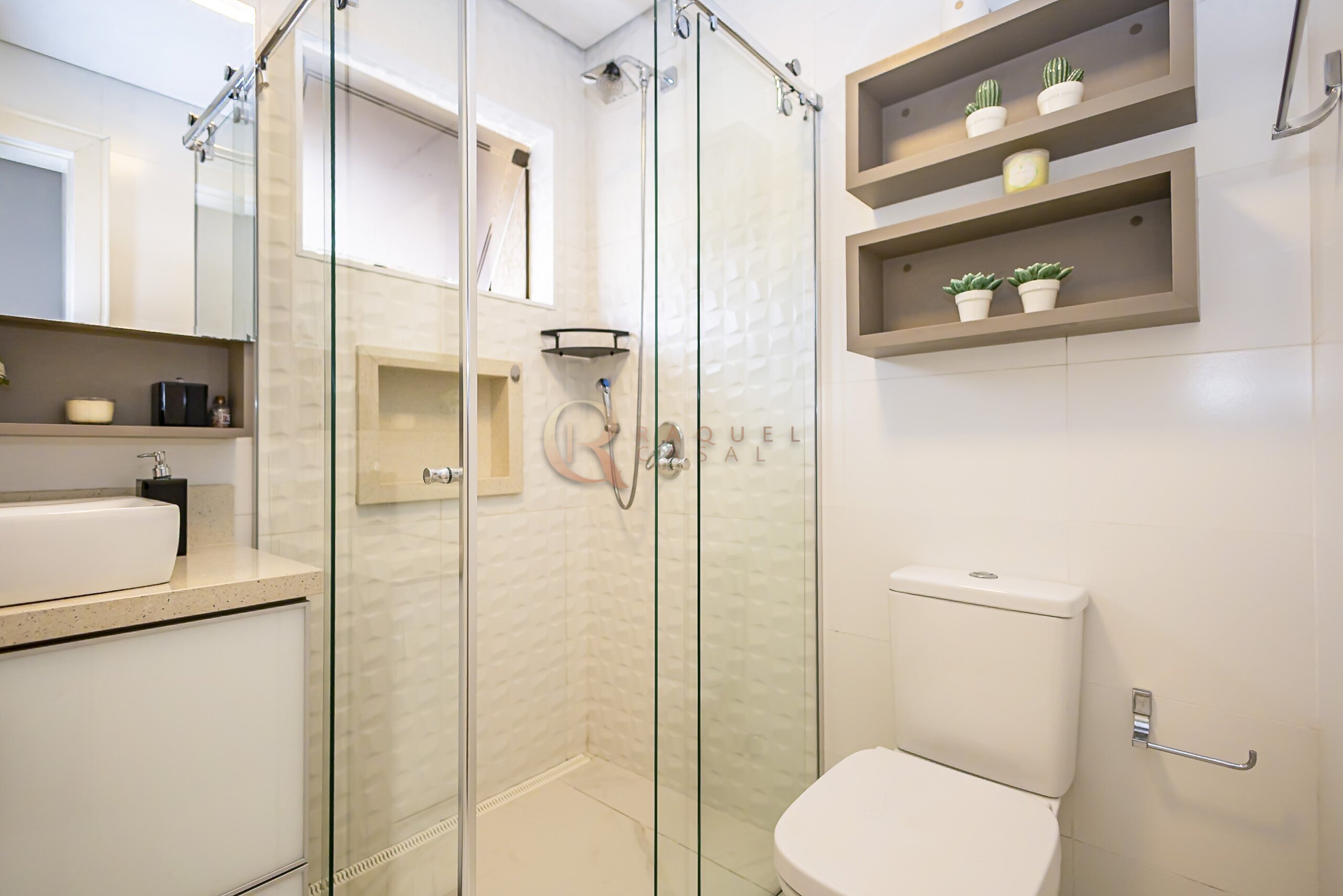 A área social reúne sala, copa e cozinha integradas, criando ambiente contemporâneo e funcional. A iluminação natural percorre os espaços com suavidade, reforçando conforto e elegância. O projeto favorece convivência, tanto no dia a dia quanto ao receber convidados.