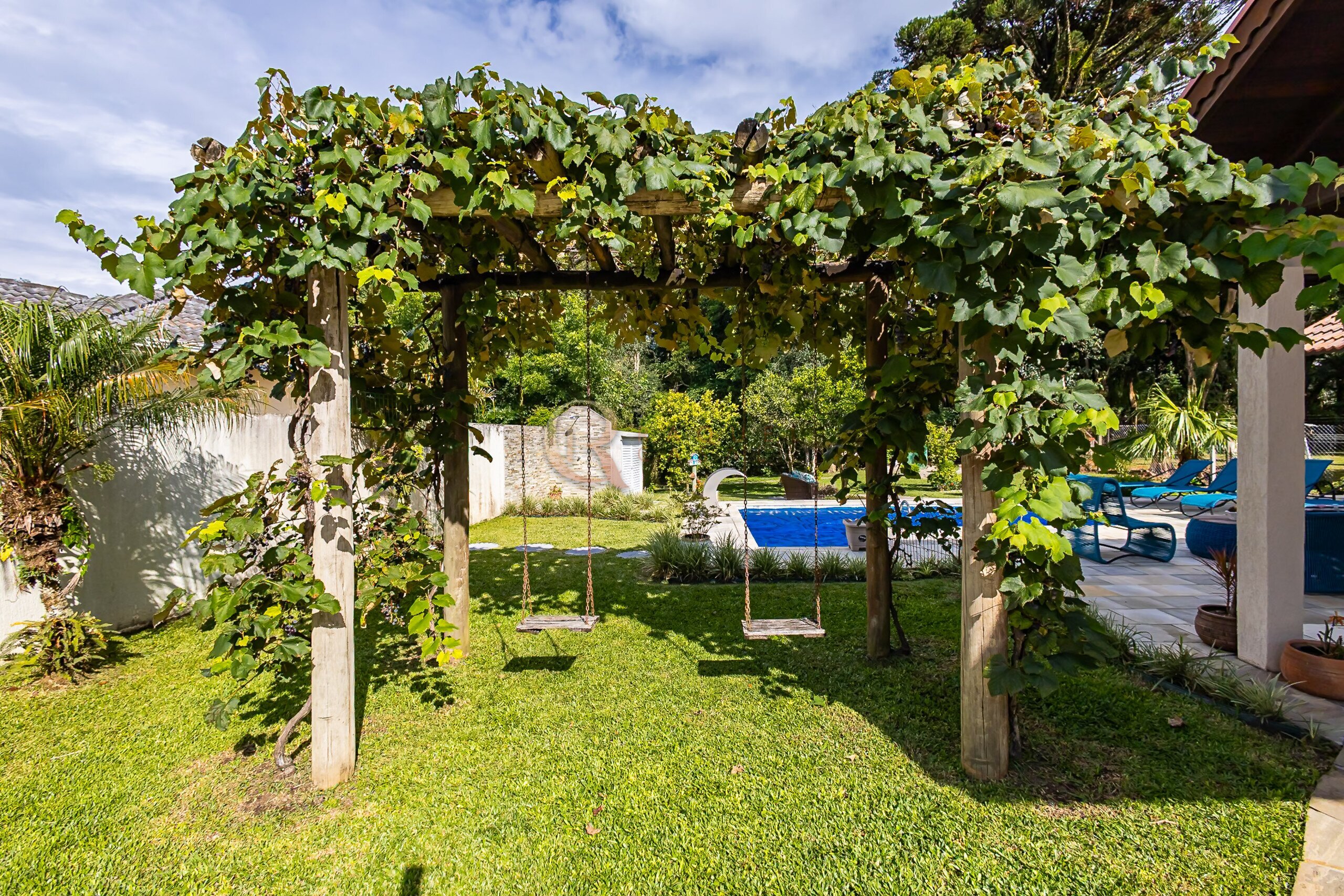 O grande diferencial está na área externa. A piscina aquecida com deck permite uso durante todo o ano. O jardim amplo, com gramado generoso, árvores frutíferas em produção e horta privativa, oferece estilo de vida conectado à natureza. Há ainda um escritório externo independente, ideal para home office ou estúdio criativo, além de acesso exclusivo a bosque integrado à propriedade, um privilégio raro em condomínios fechados.
