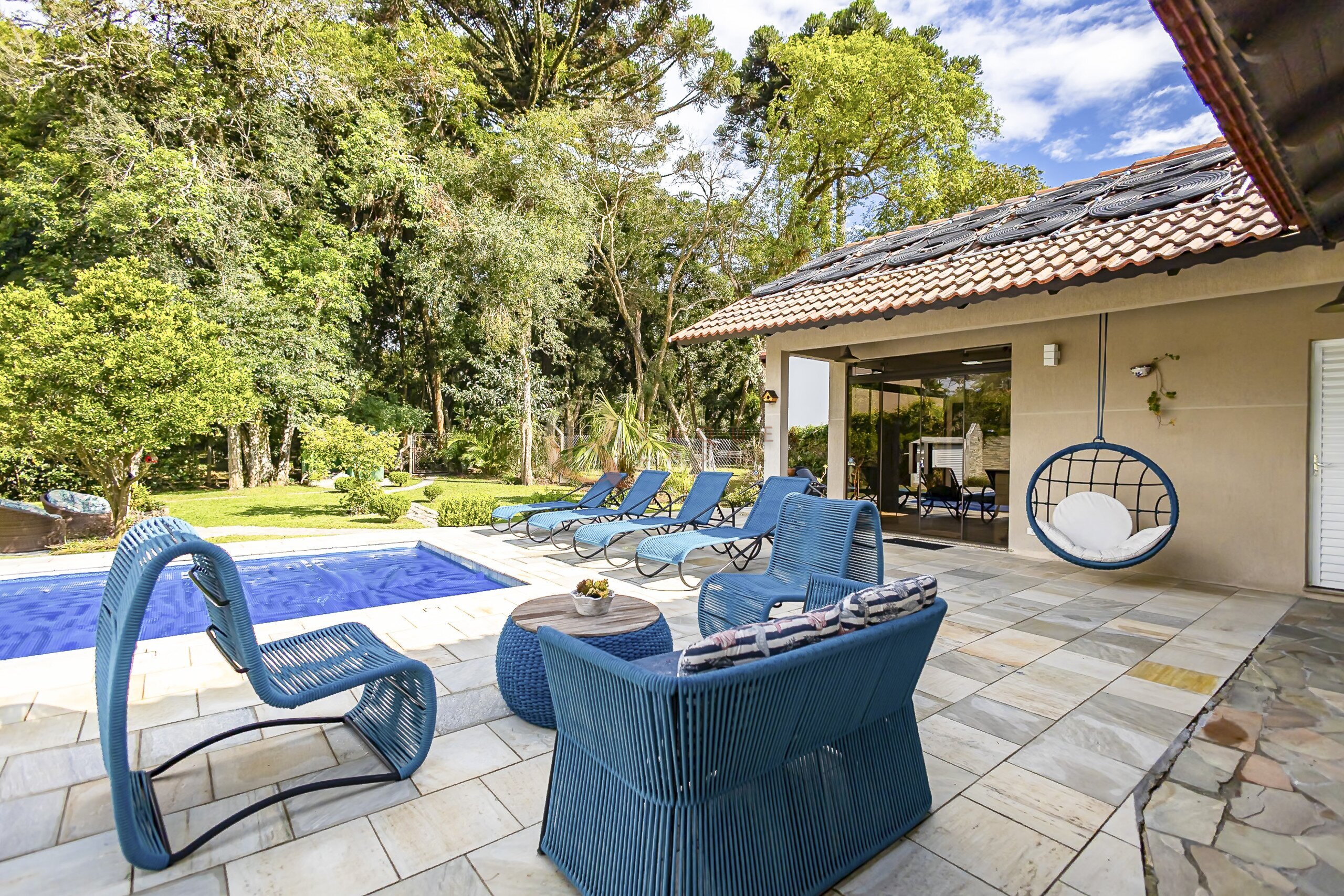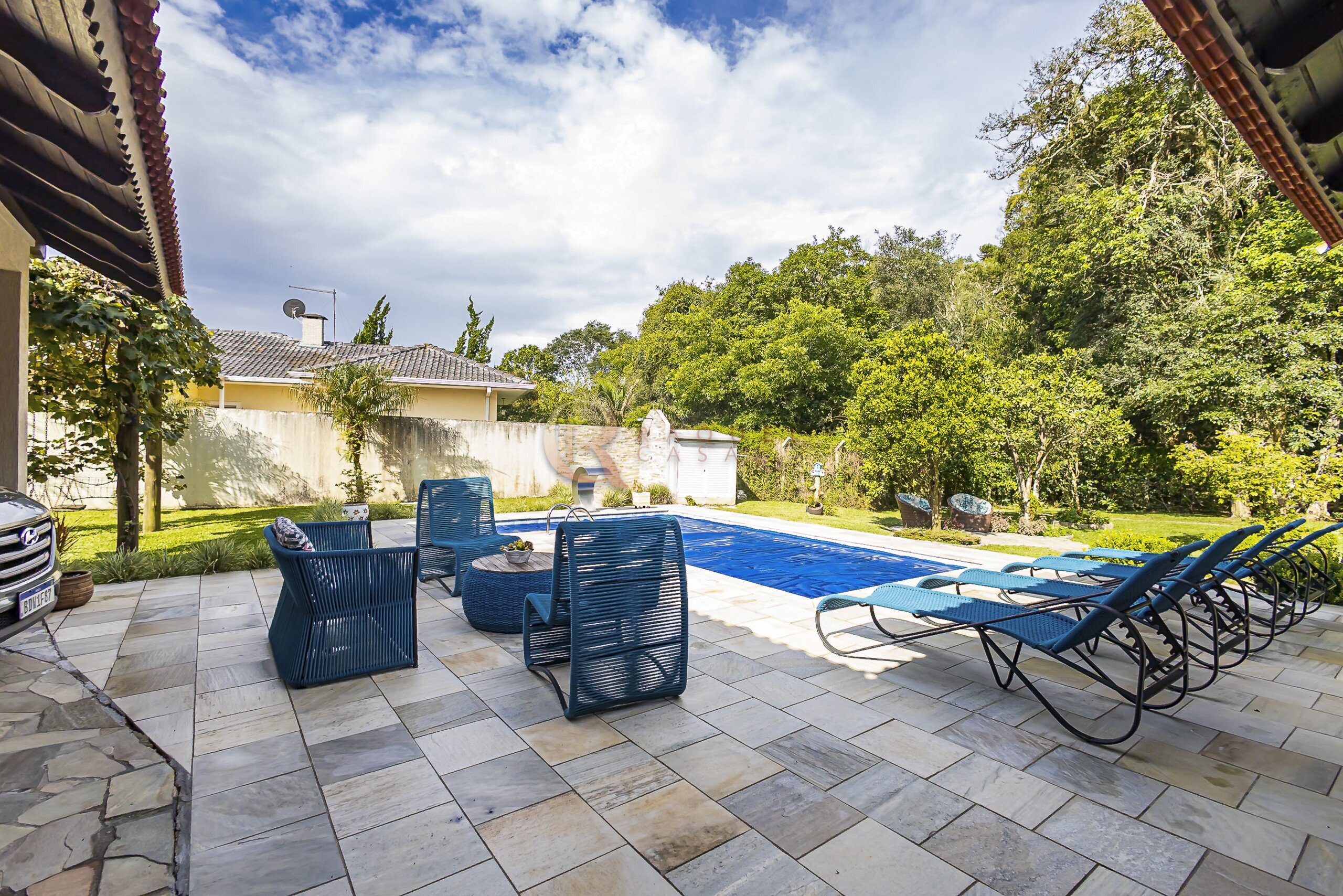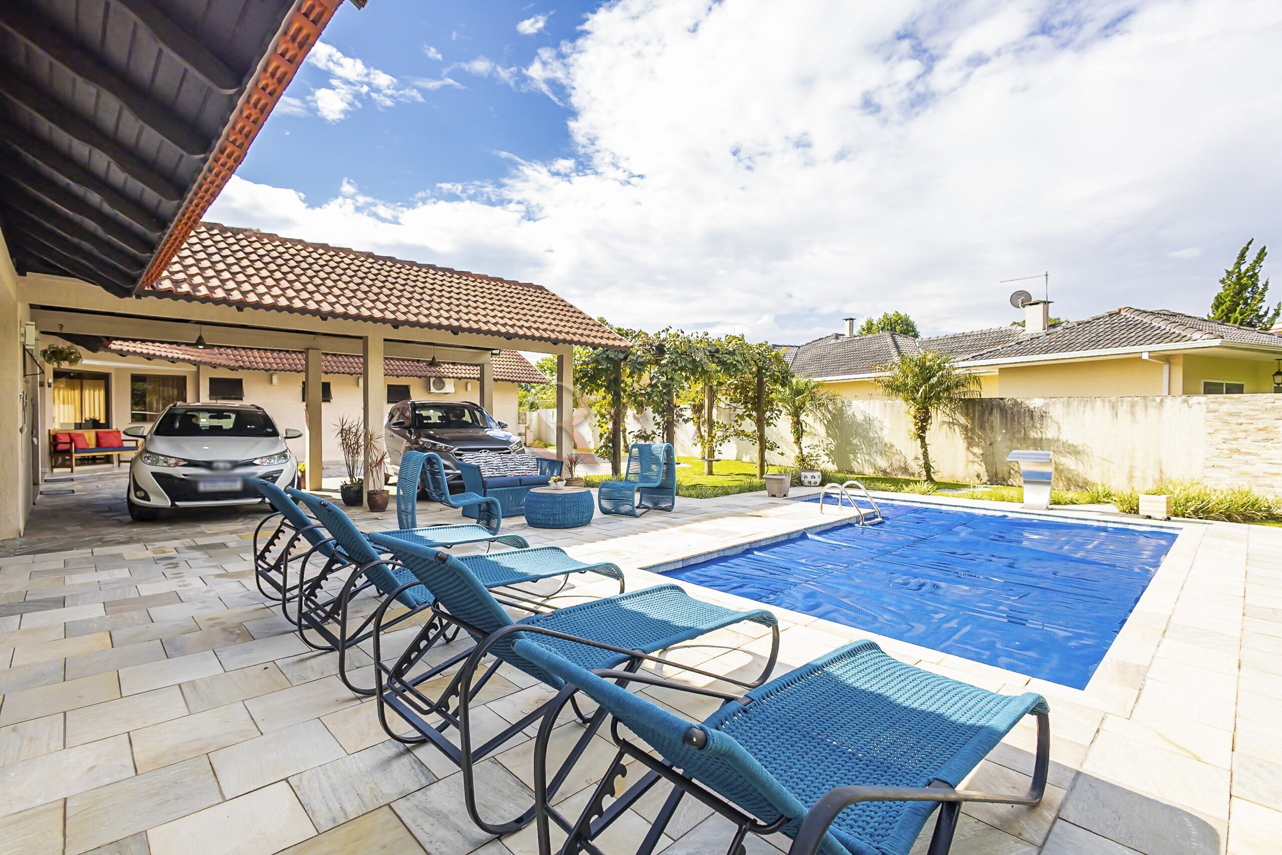 Este imóvel atende quem busca casa em condomínio fechado com terreno amplo, piscina aquecida, vista permanente para área verde e localização nobre em frente ao campo de golfe do Clube Curitibano.