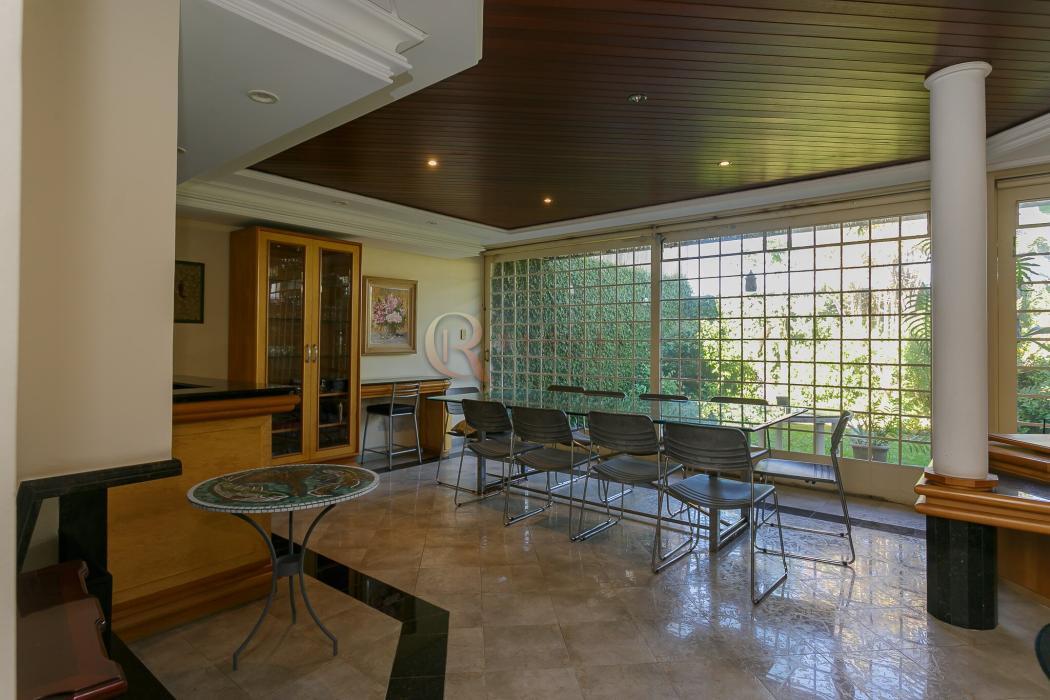 Com 603 m2, três salas com lareiras, adega, copa, cozinha, suíte com 02 closet, 05 quartos sendo 03 suítes, ático, salão de festas com churrasqueira, terraços, jardim, suíte de empregada, oficina, garagem para 06 carros.