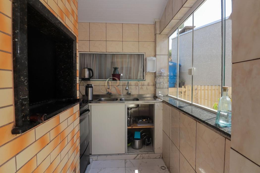 Cozinha/copa espaçosa com churrasqueira a carvão integrada, perfeita para reunir a família