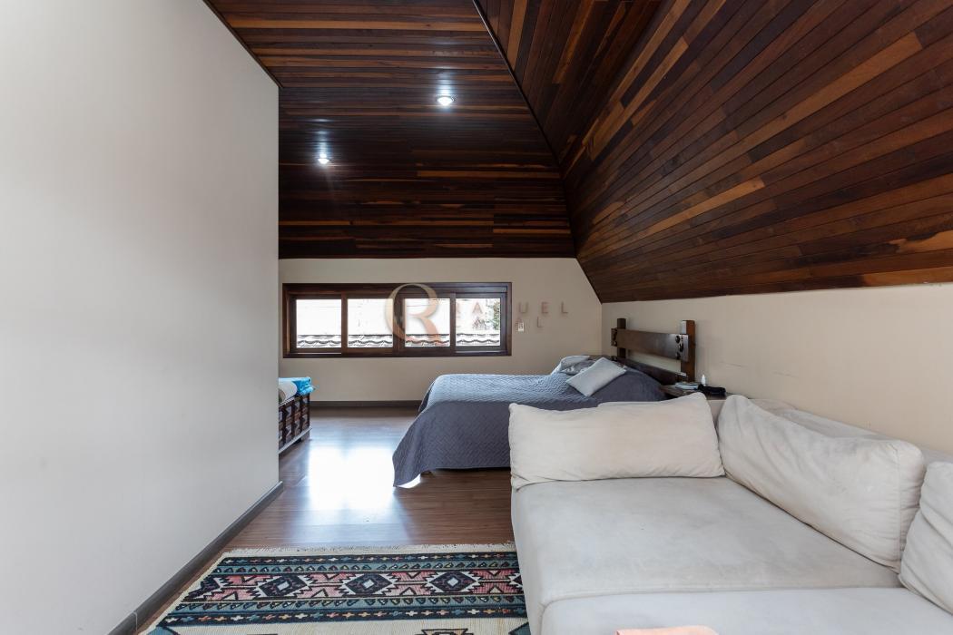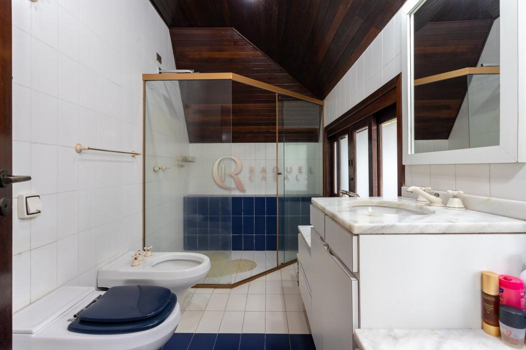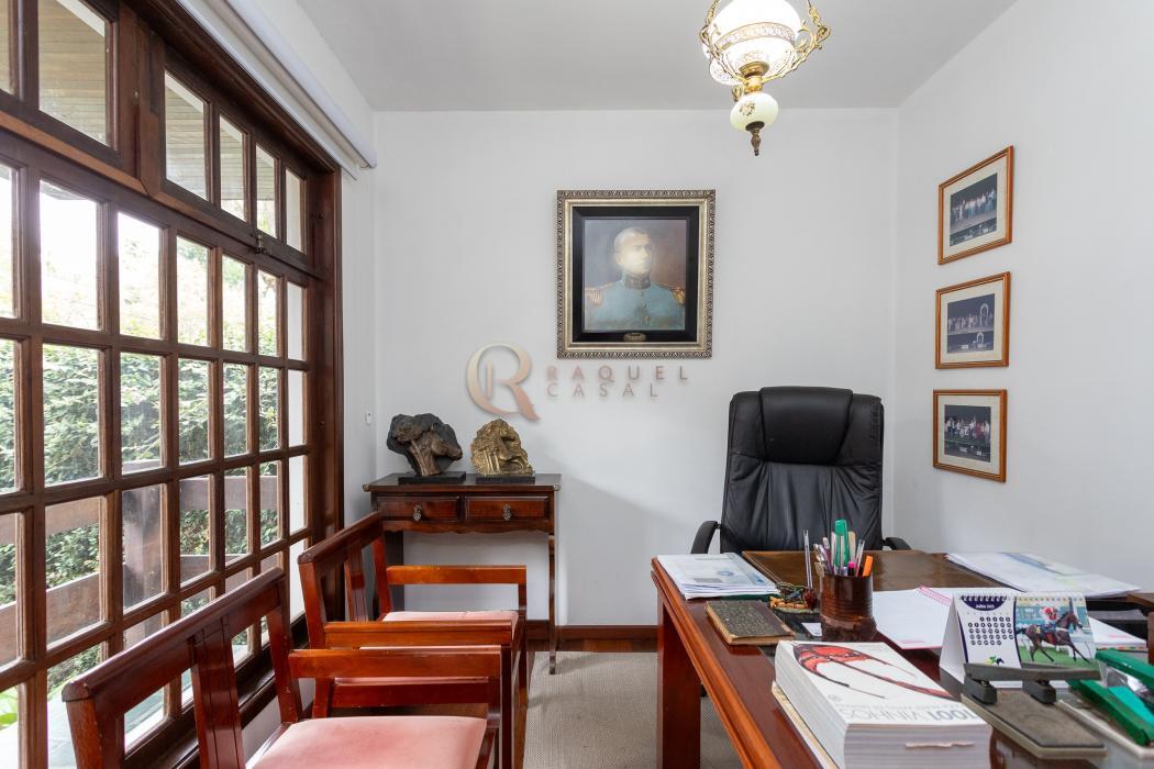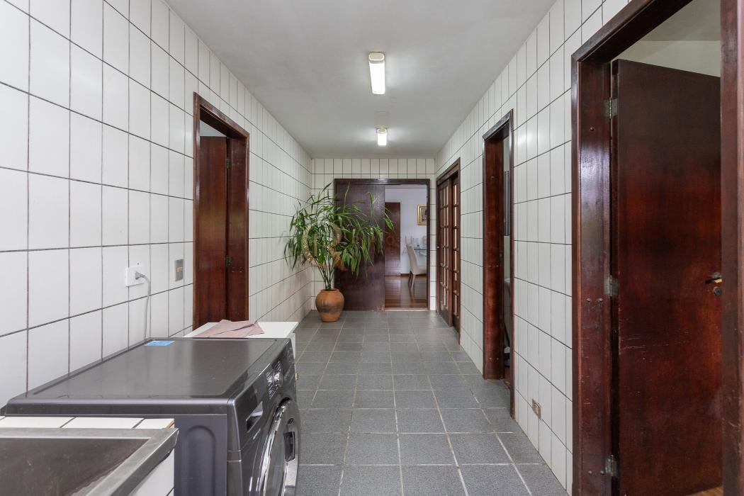 São 4 andares, sendo no primeiro piso ampla garagem, churrasqueira, salão de festas e um terreno de área verde extremamente amplo, com uma casa aos fundos(casa para caseiro, atelier) de 80m² e um depósito. No segunda andar vocês desfrutará de salas para vários ambientes, cozinha e dependência de empregada com muito espaço. Os 4 quartos, sendo 3 suítes, posicionam-se no terceiro andar, todos interligados por uma belíssima sacada com vista para o jardim. O último e não menos importante andar conta com um ático que se assemelha a um amplo salão de festas.