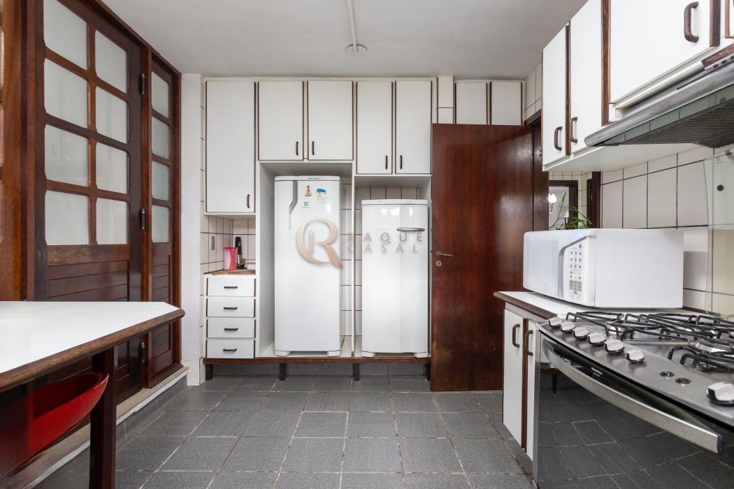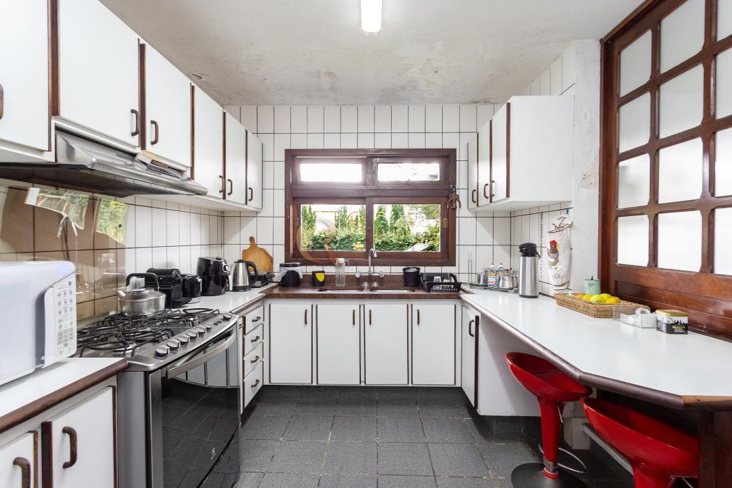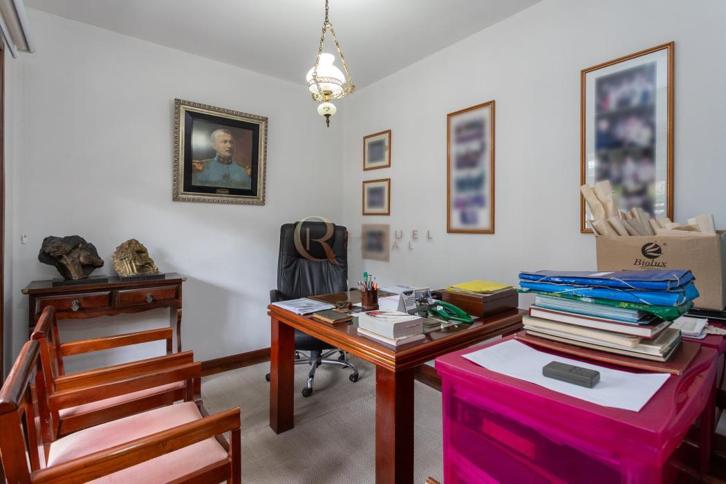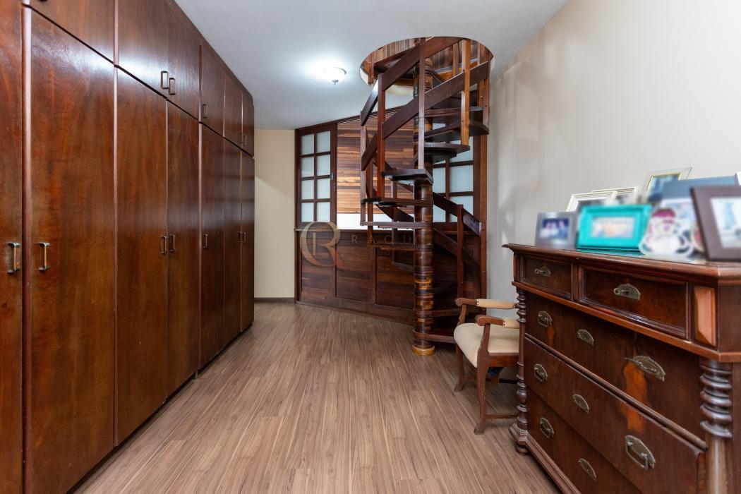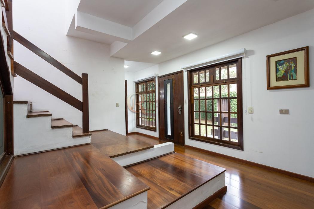 São 4 andares, sendo no primeiro piso ampla garagem, churrasqueira, salão de festas e um terreno de área verde extremamente amplo, com uma casa aos fundos(casa para caseiro, atelier) de 80m² e um depósito. No segunda andar vocês desfrutará de salas para vários ambientes, cozinha e dependência de empregada com muito espaço. Os 4 quartos, sendo 3 suítes, posicionam-se no terceiro andar, todos interligados por uma belíssima sacada com vista para o jardim. O último e não menos importante andar conta com um ático que se assemelha a um amplo salão de festas.