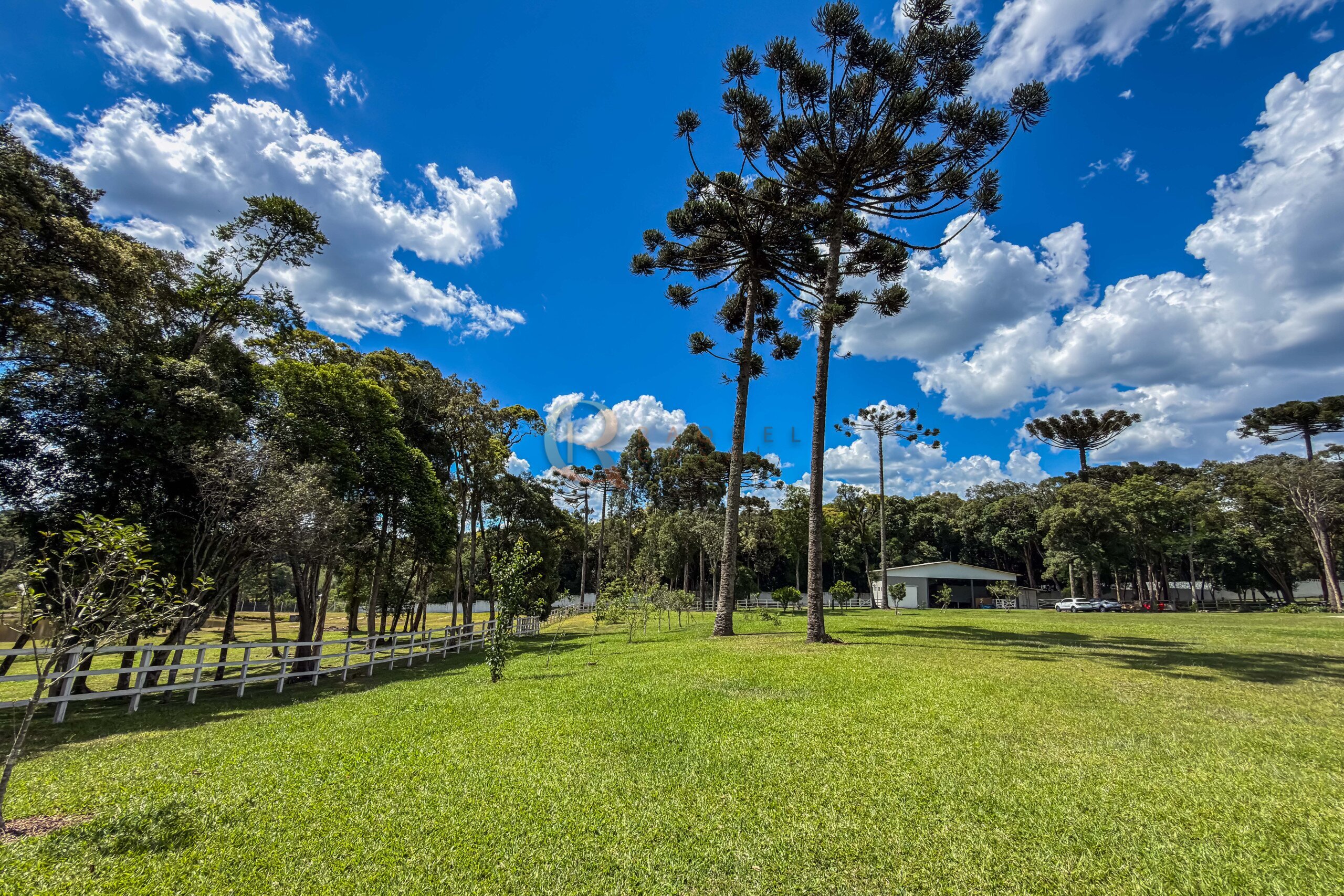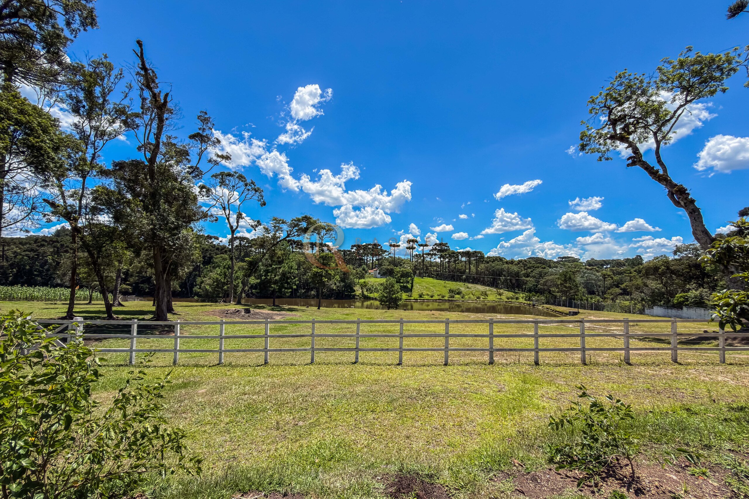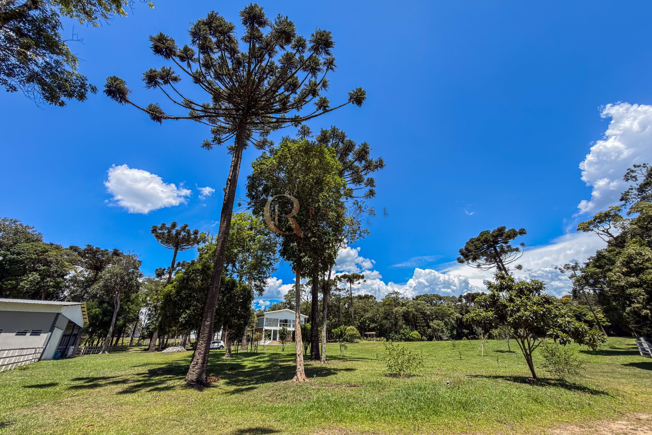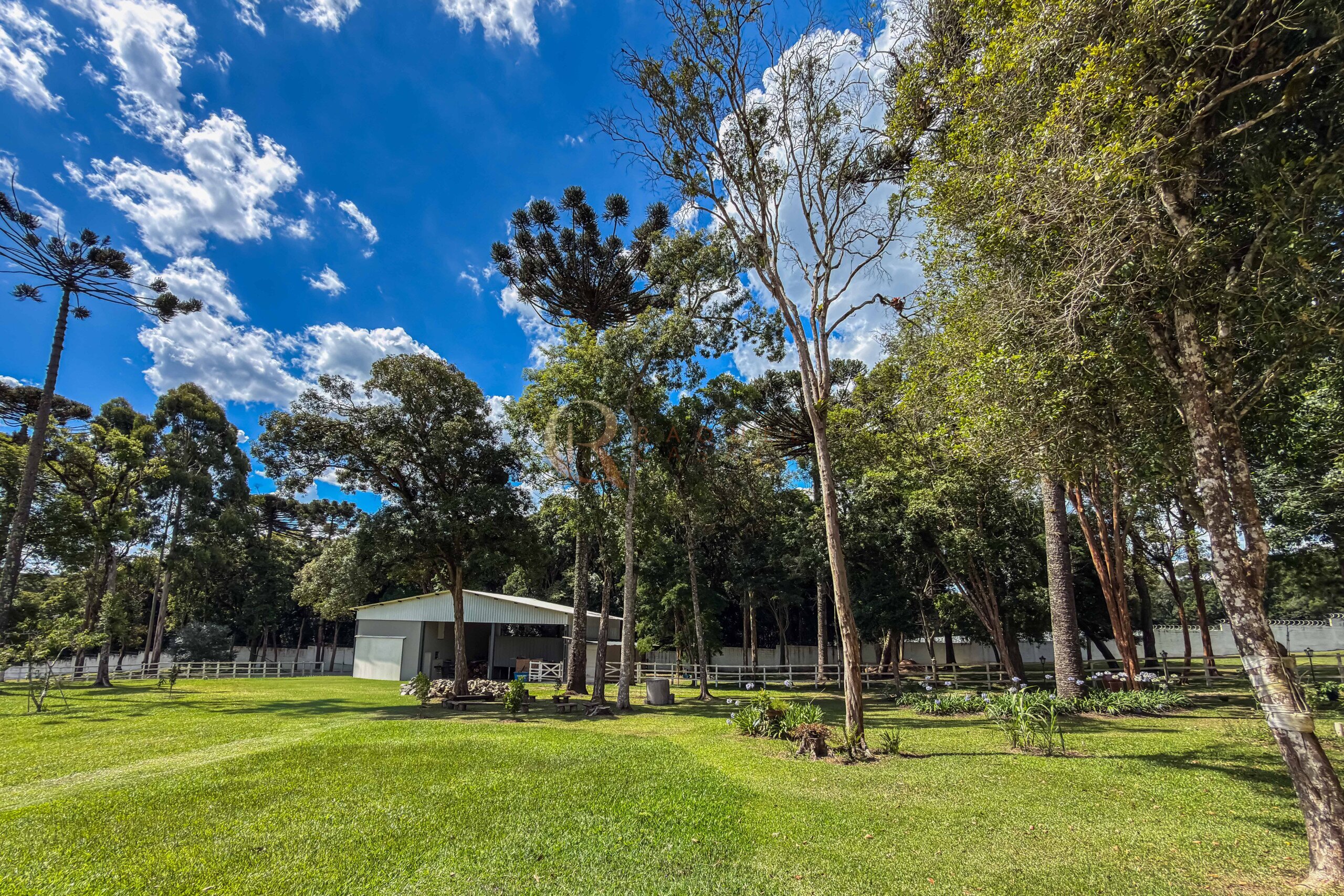 O terreno abriga dois lagos naturais, diversas árvores frutíferas e presença marcante de araucárias, símbolo do Paraná. O cenário é consolidado, maduro e altamente valorizado, criando um ambiente de refúgio verdadeiro para quem busca chácara próxima a Curitiba com contato direto com a natureza.