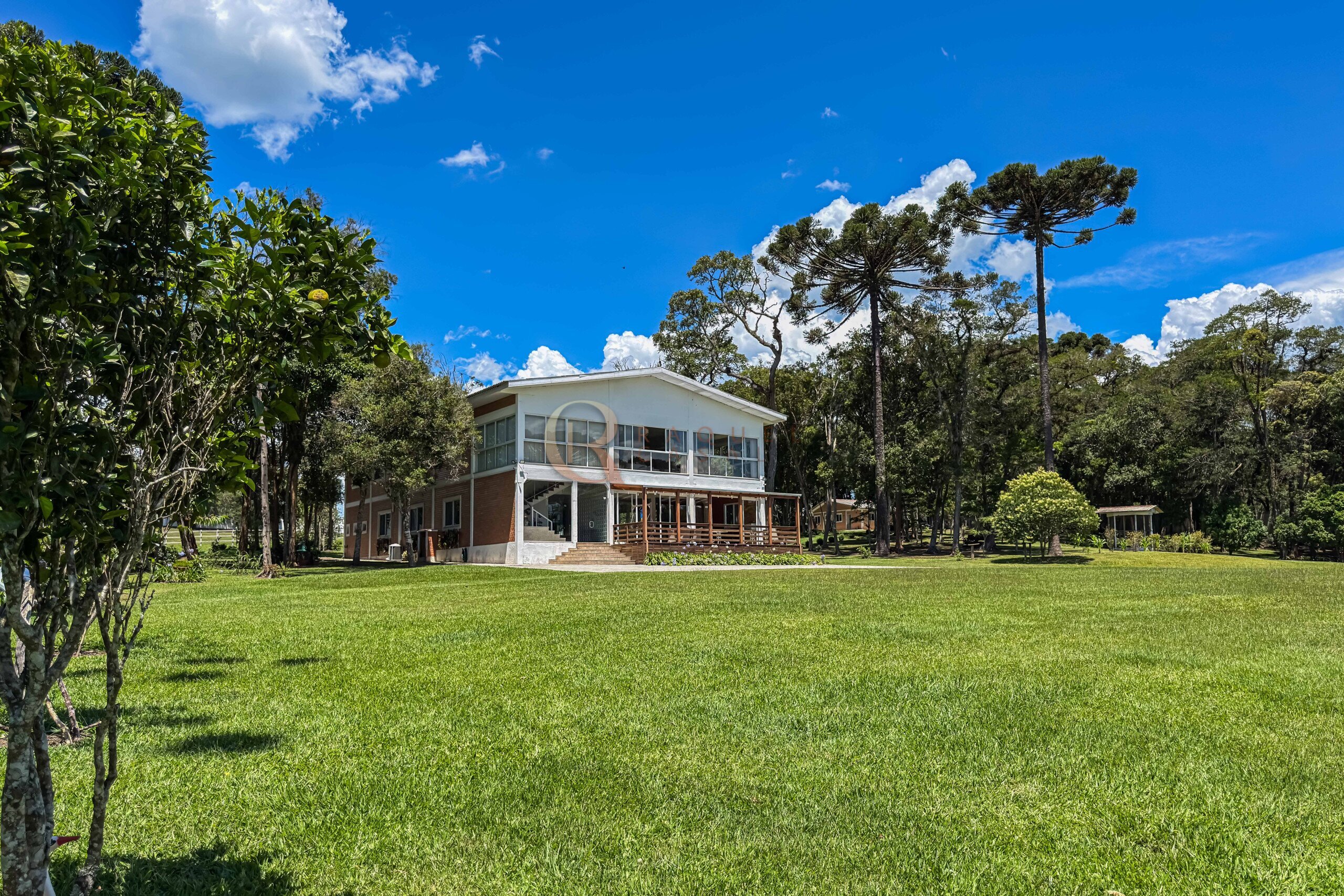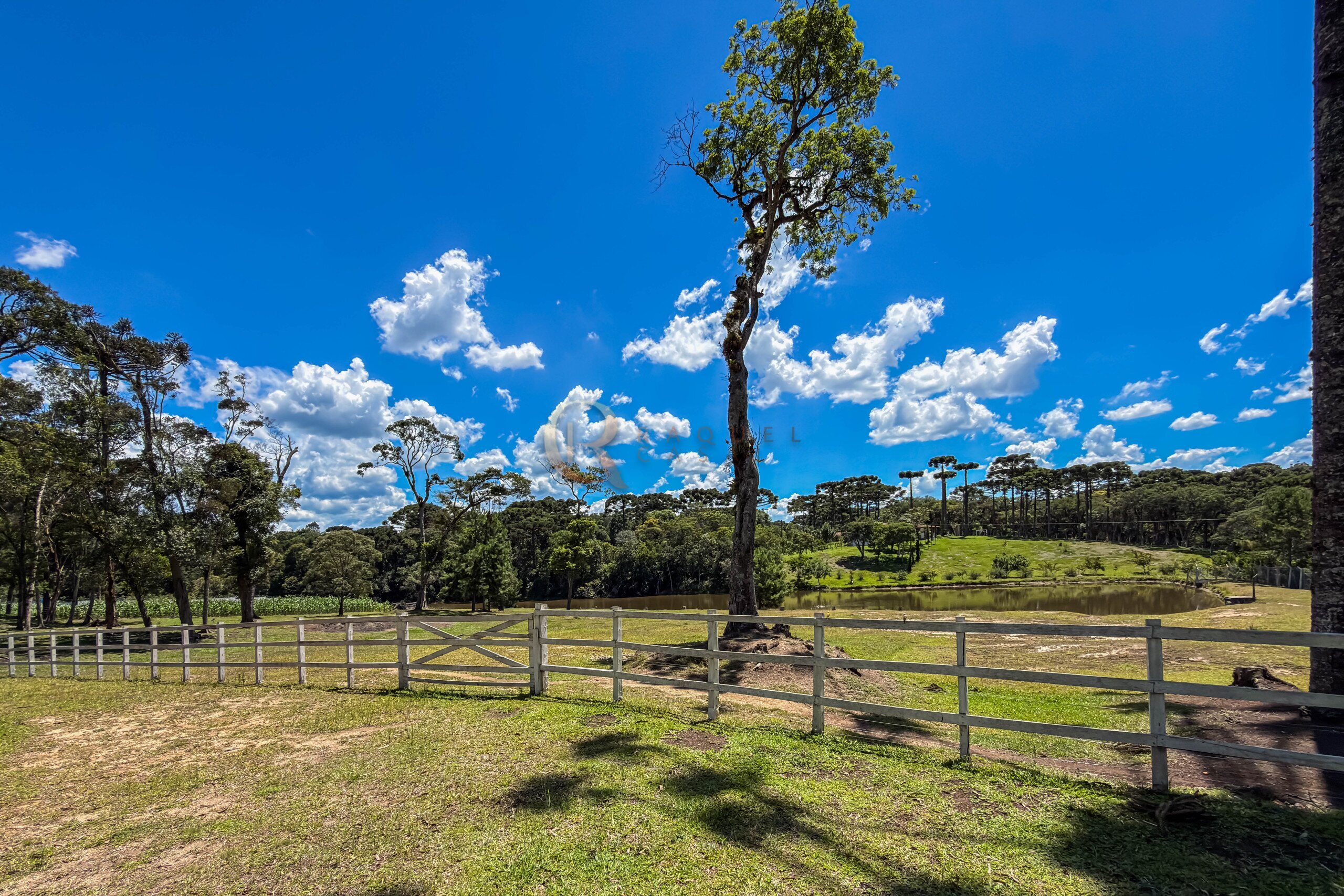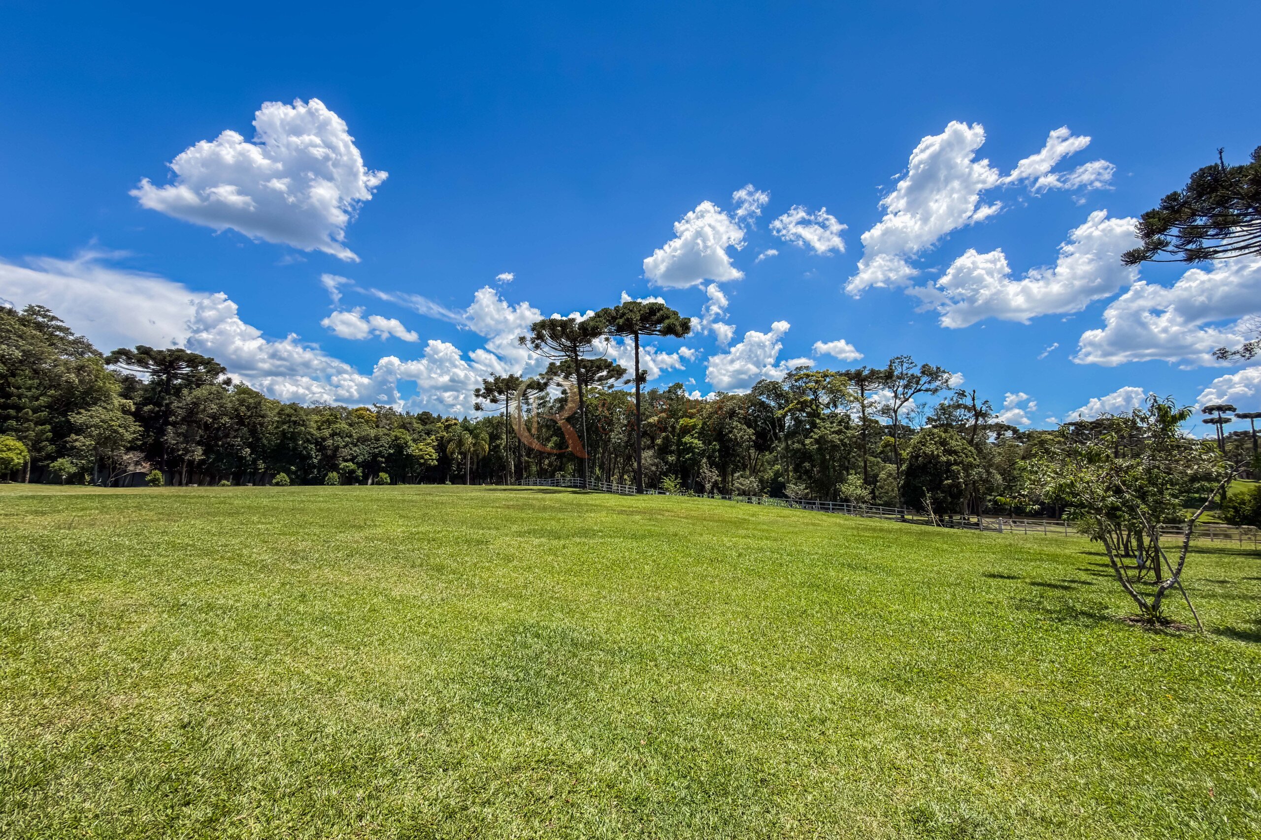 O terreno abriga dois lagos naturais, diversas árvores frutíferas e presença marcante de araucárias, símbolo do Paraná. O cenário é consolidado, maduro e altamente valorizado, criando um ambiente de refúgio verdadeiro para quem busca chácara próxima a Curitiba com contato direto com a natureza.