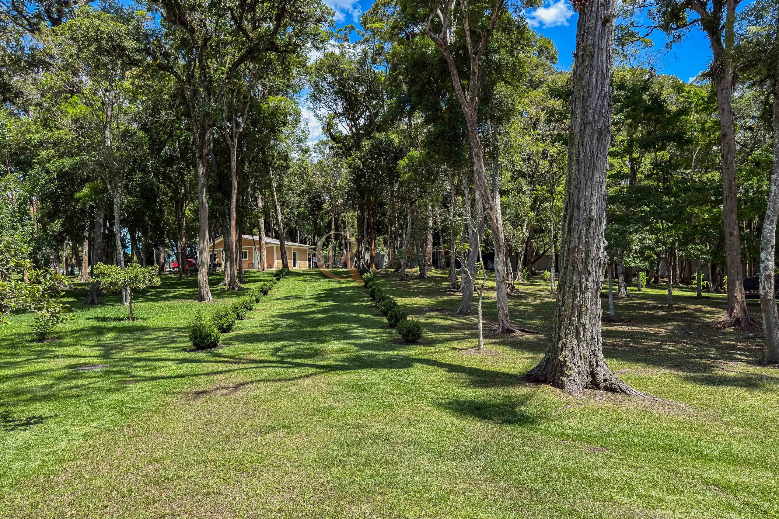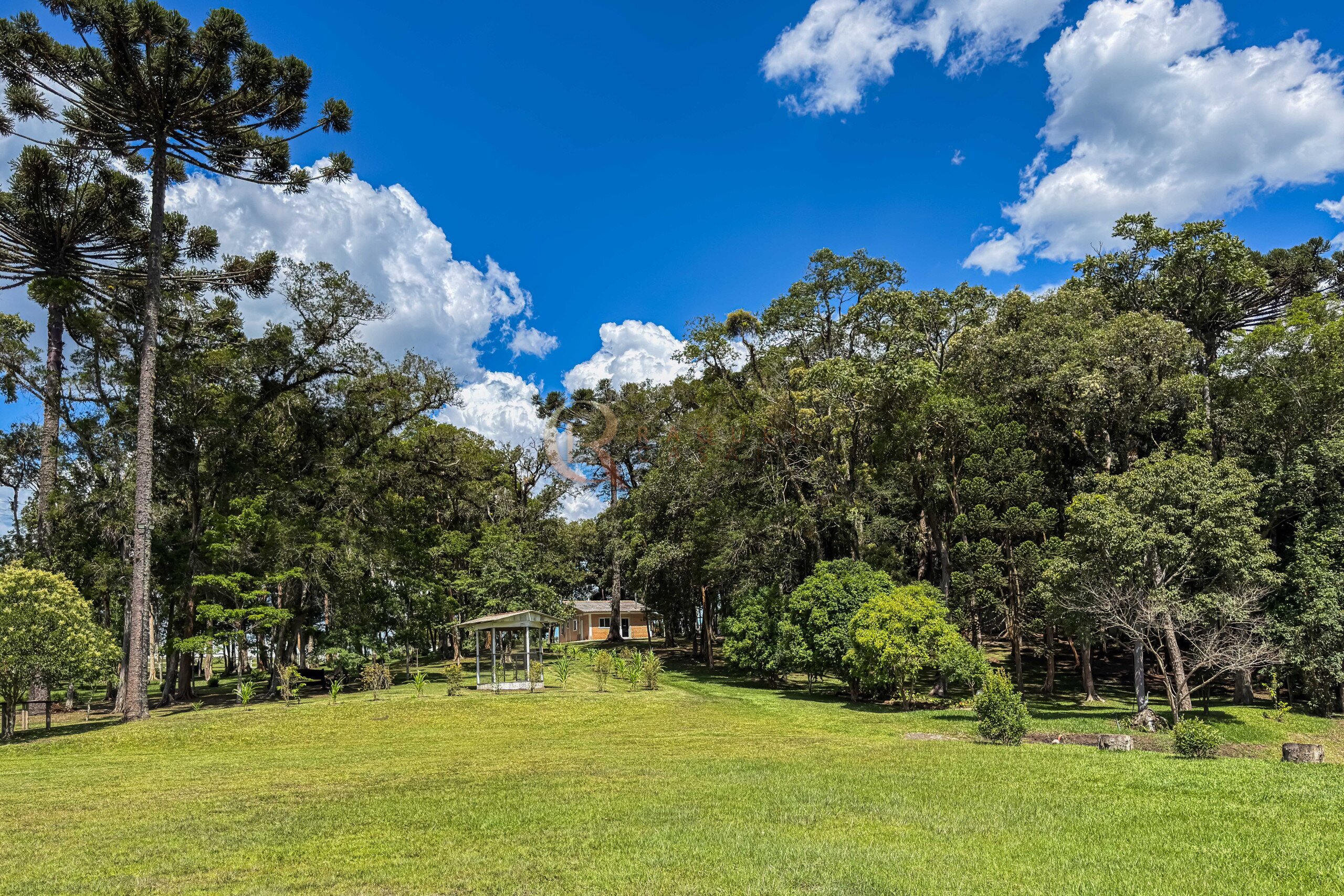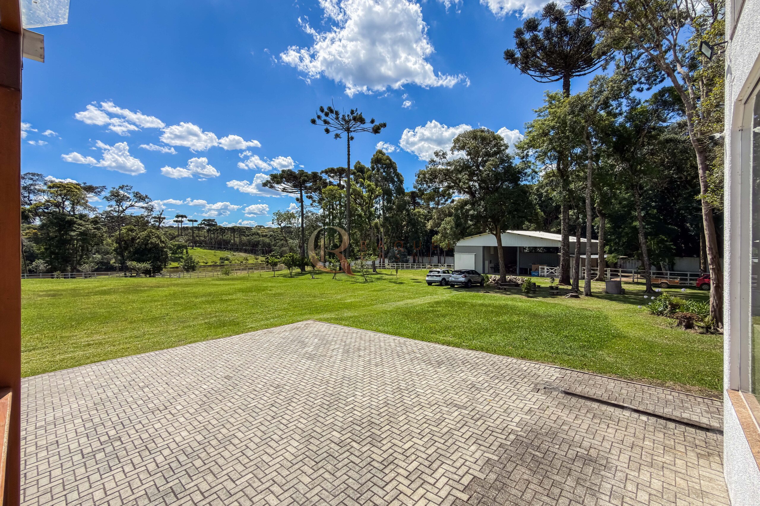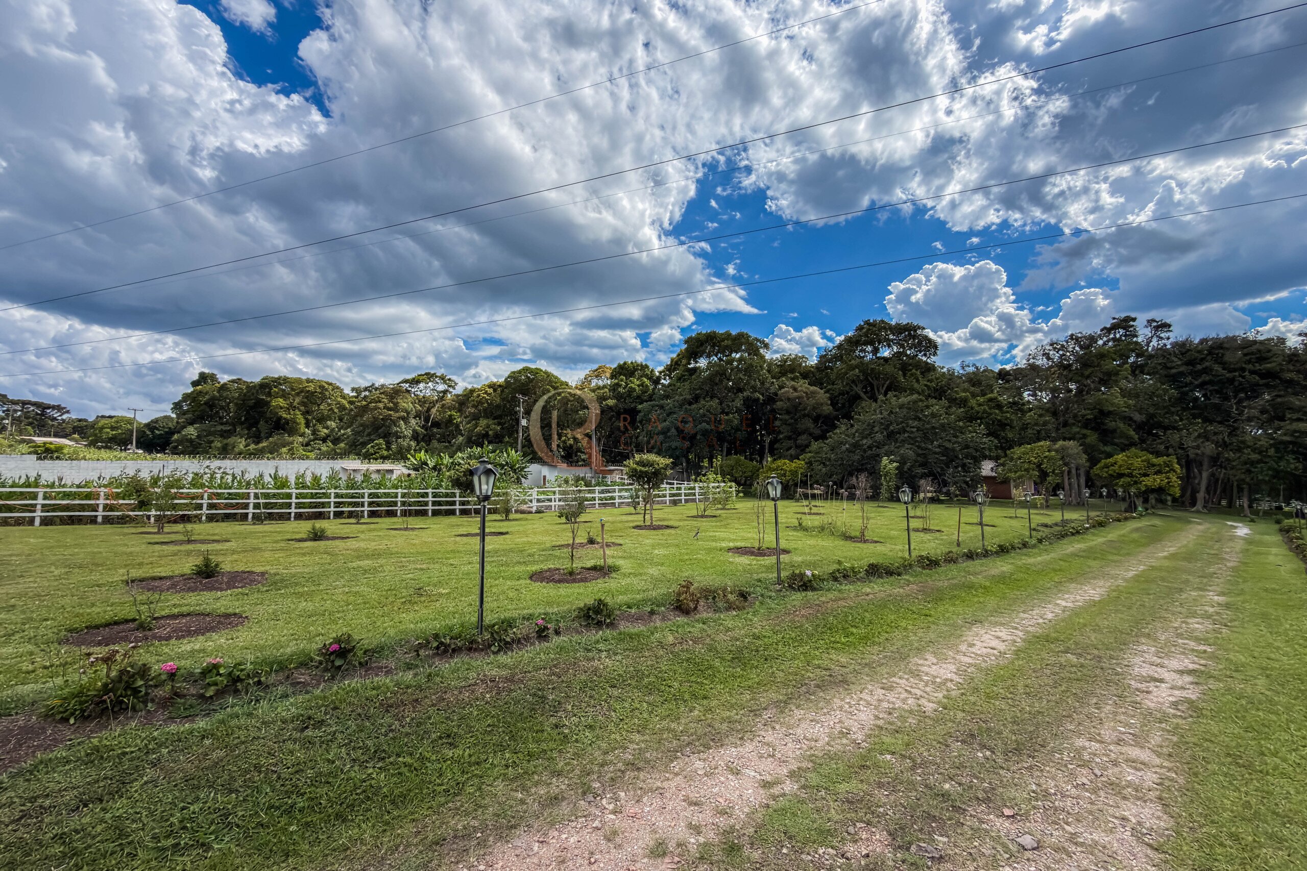 O terreno abriga dois lagos naturais, diversas árvores frutíferas e presença marcante de araucárias, símbolo do Paraná. O cenário é consolidado, maduro e altamente valorizado, criando um ambiente de refúgio verdadeiro para quem busca chácara próxima a Curitiba com contato direto com a natureza.