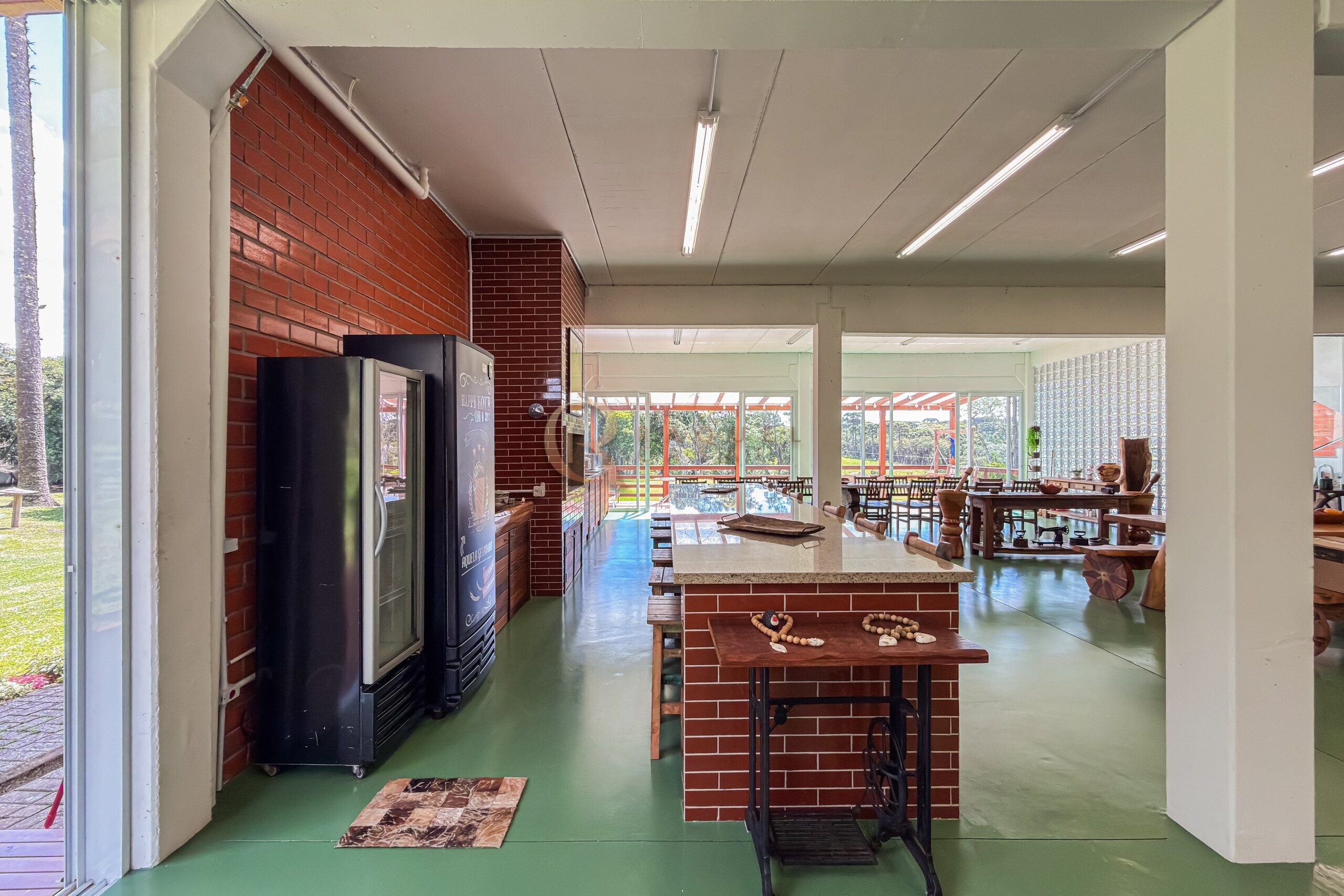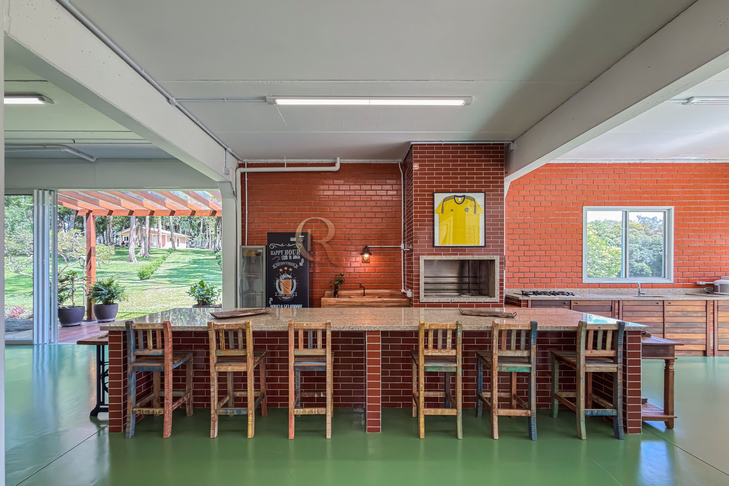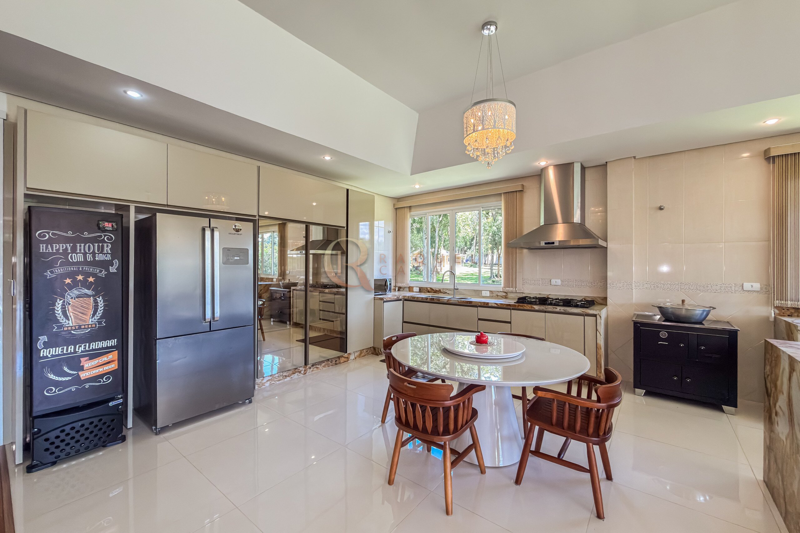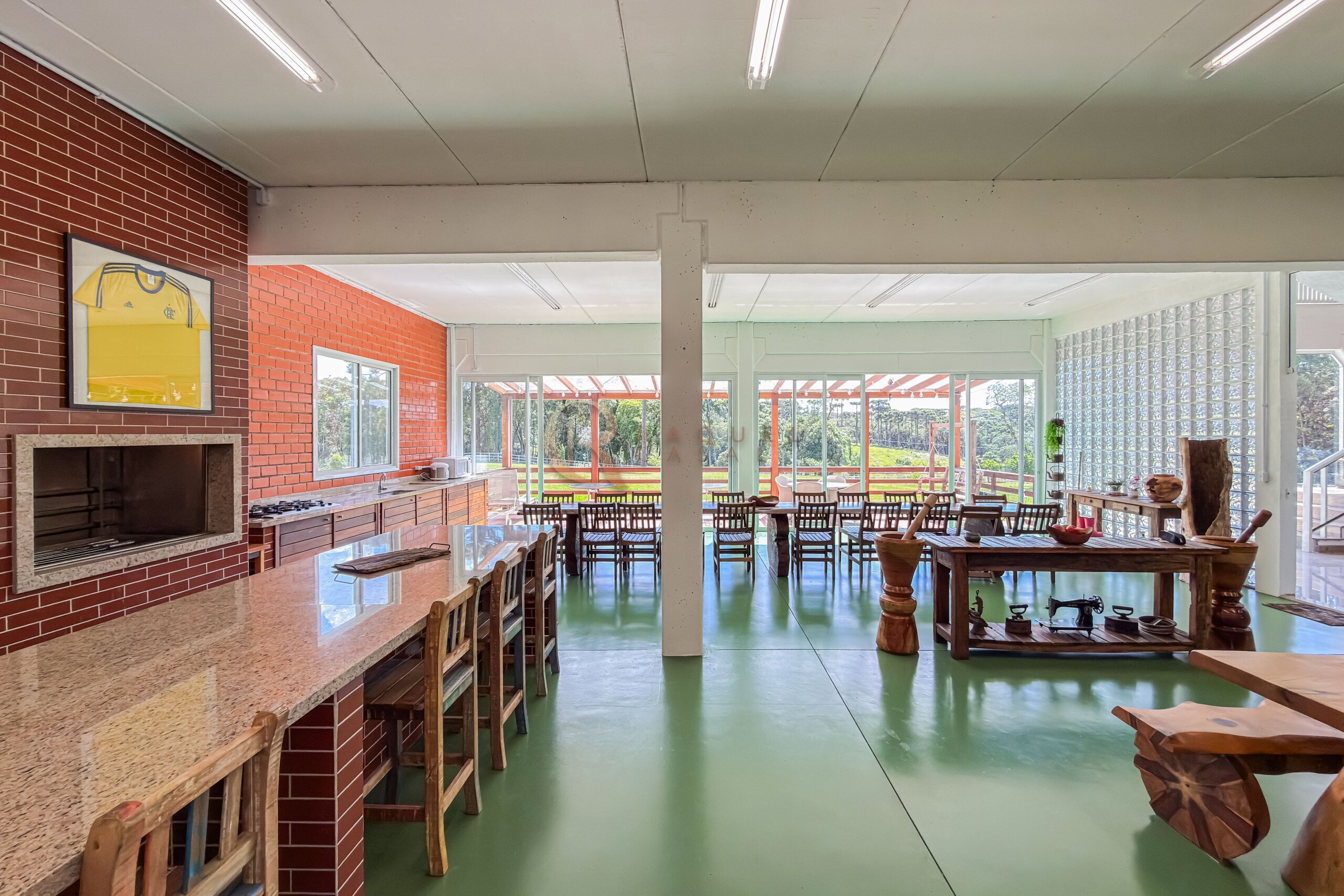 Neste mesmo nível encontra-se um dos grandes diferenciais da propriedade: uma cozinha gourmet completa, planejada, mobiliada e equipada com churrasqueira, integrada a uma ampla sala de jantar. Um ambiente desenhado para receber com elegância, onde convivência e funcionalidade caminham juntas.