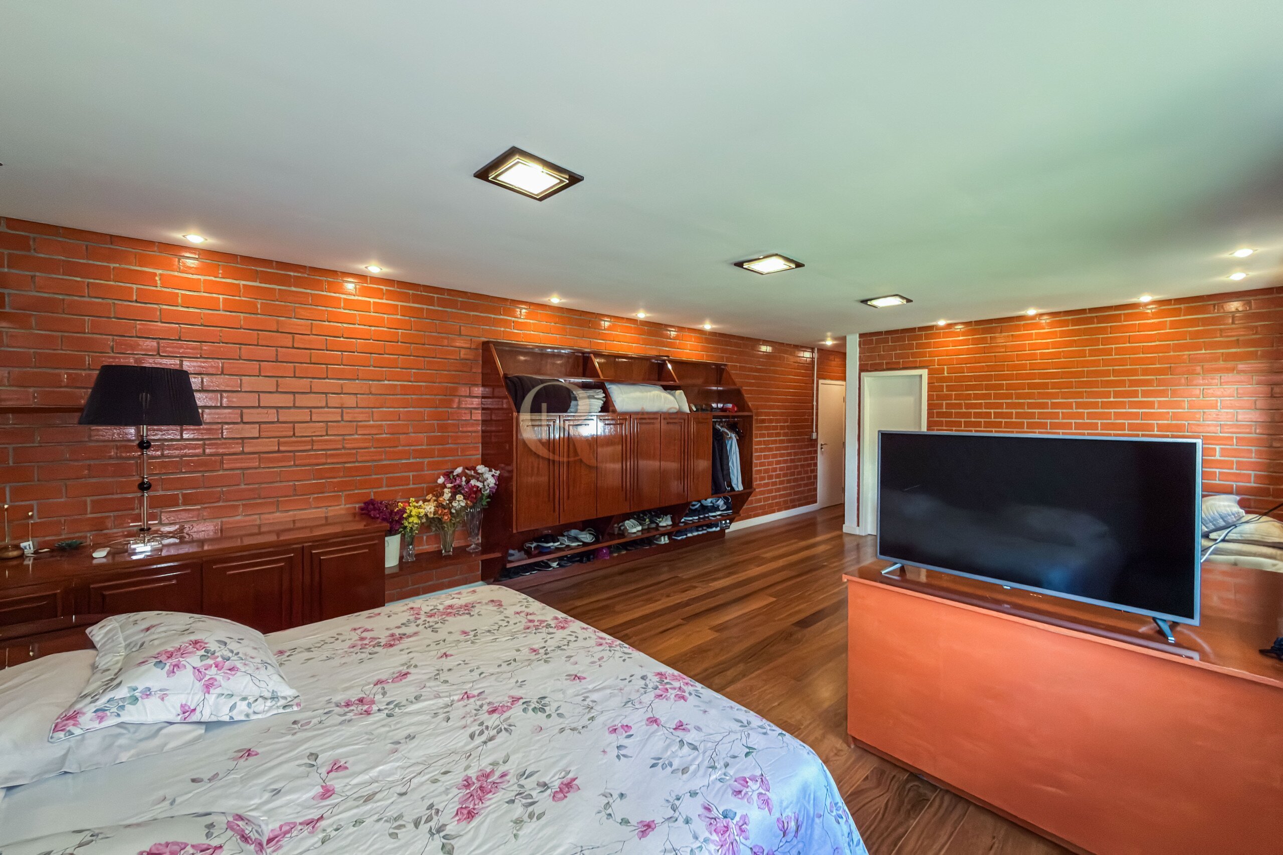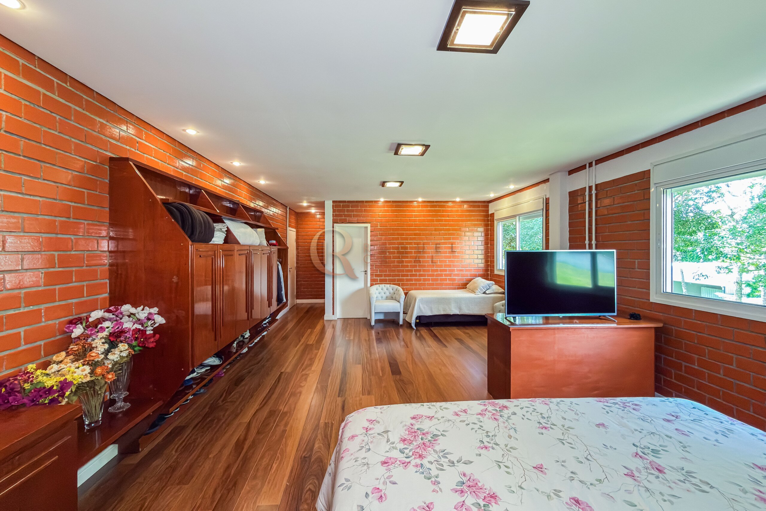 A residência principal possui mais de 700 m² de área construída, com padrão construtivo robusto e manutenção impecável. No pavimento superior estão quatro suítes amplas, incluindo uma suíte master, garantindo privacidade e organização na área íntima.