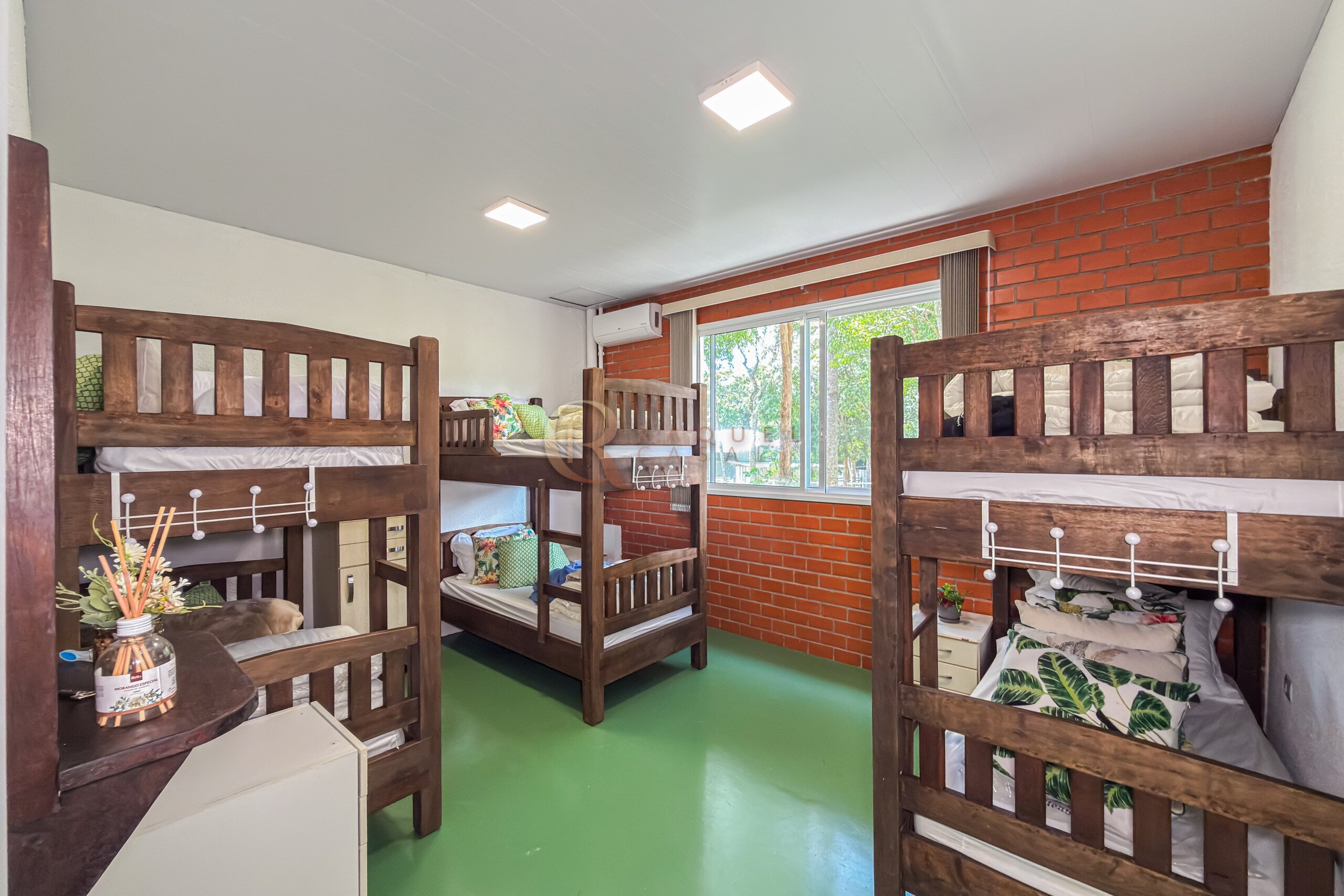 Além das suítes, há ainda um dormitório amplo com quatro beliches, ideal para acomodar hóspedes, crianças ou grupos, mantendo conforto sem comprometer o padrão da residência.