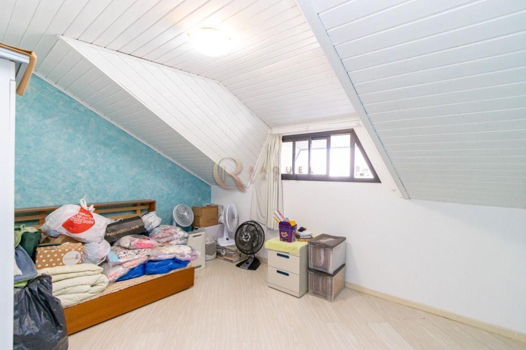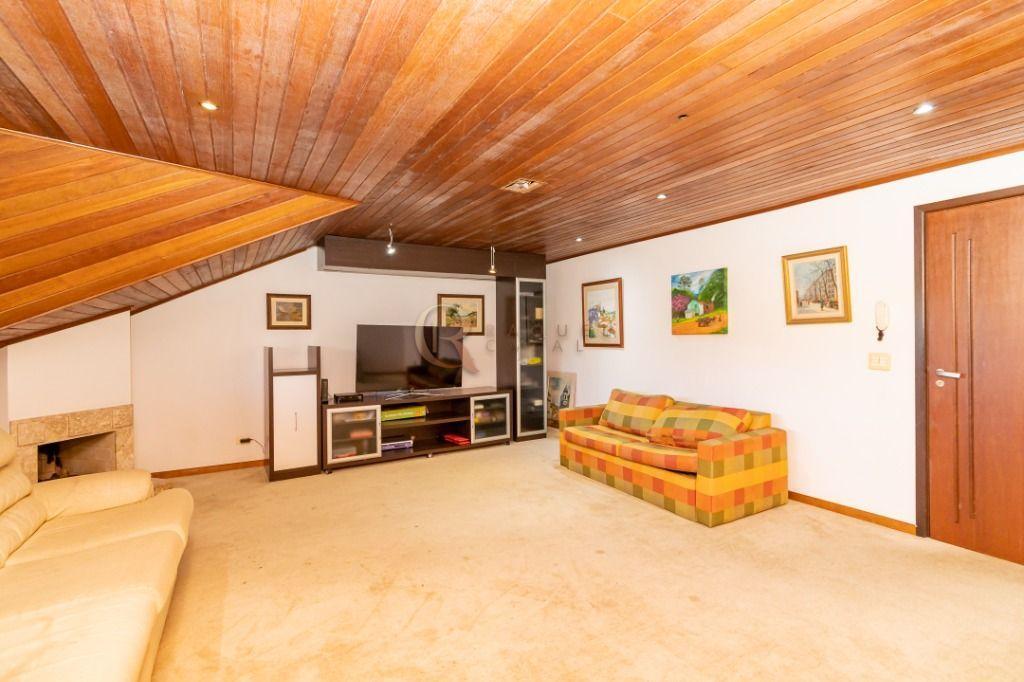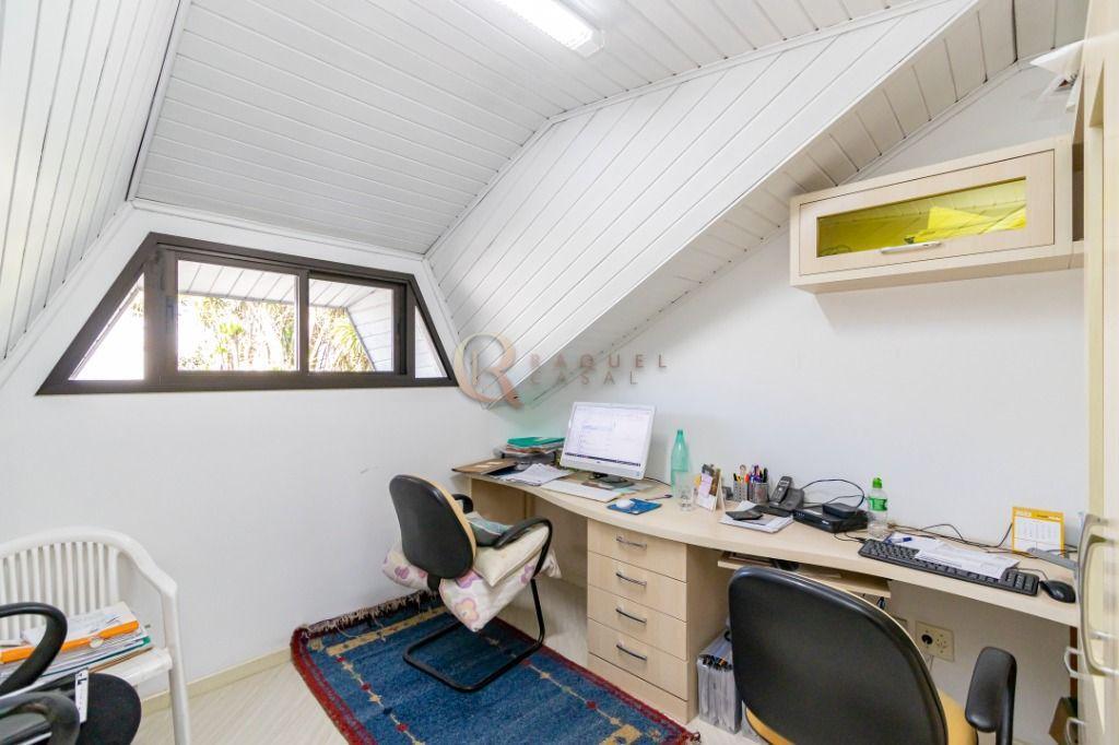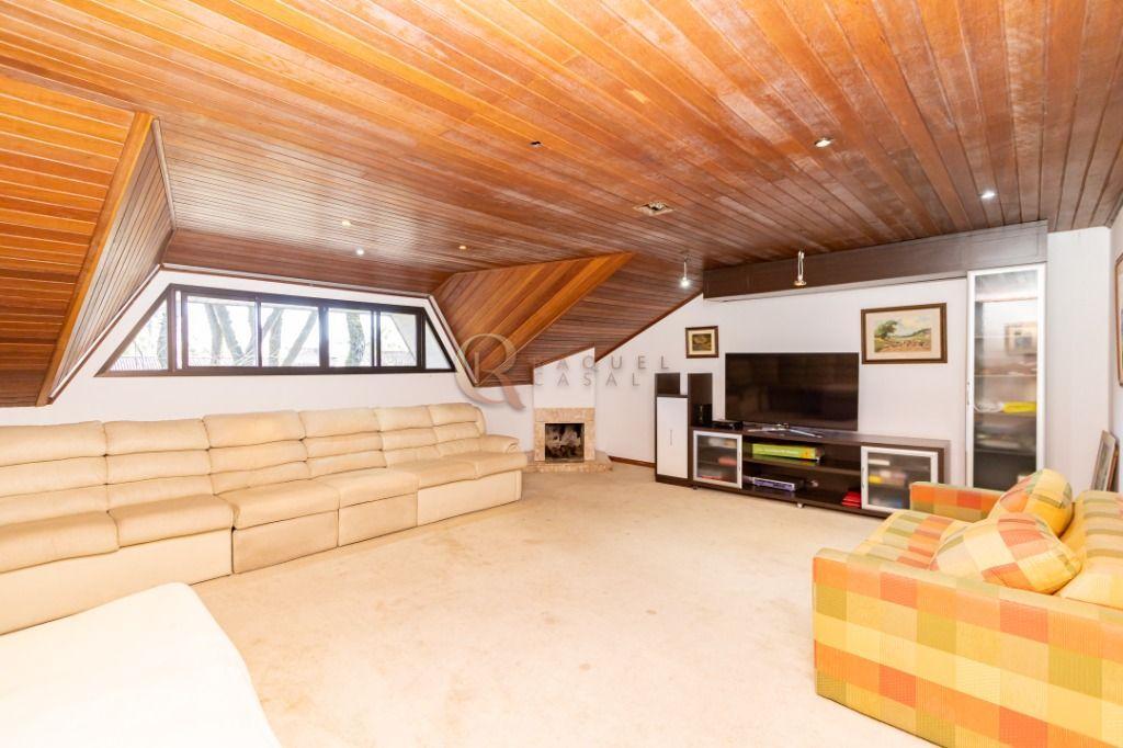 1 quarto, escritório com armários, banheiro completo, amplo ático com sala de tv, som, lareira.