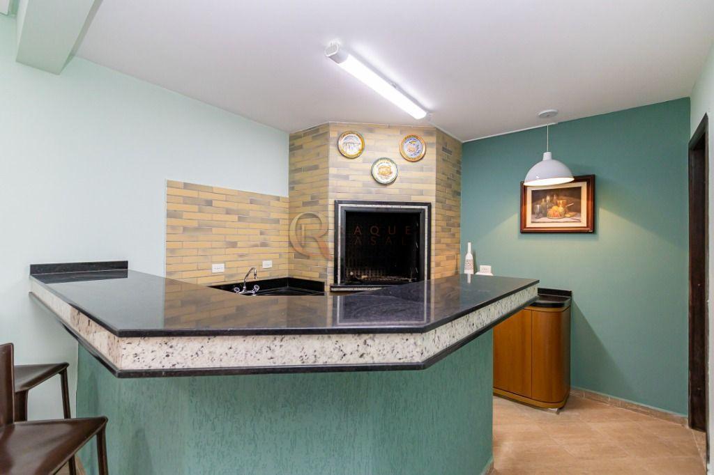 Nos fundos da residencial, amplo salão com Churrasqueira, bancada e banheiro.