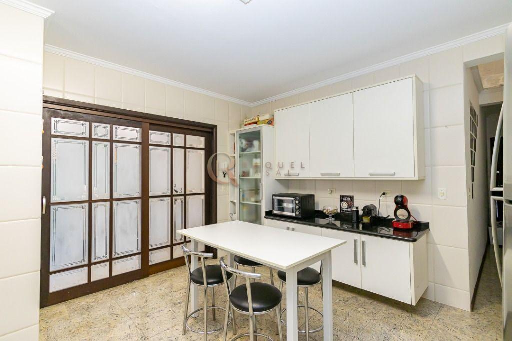Cozinha ampla, com armários planejados e mesa para refeições.