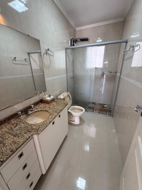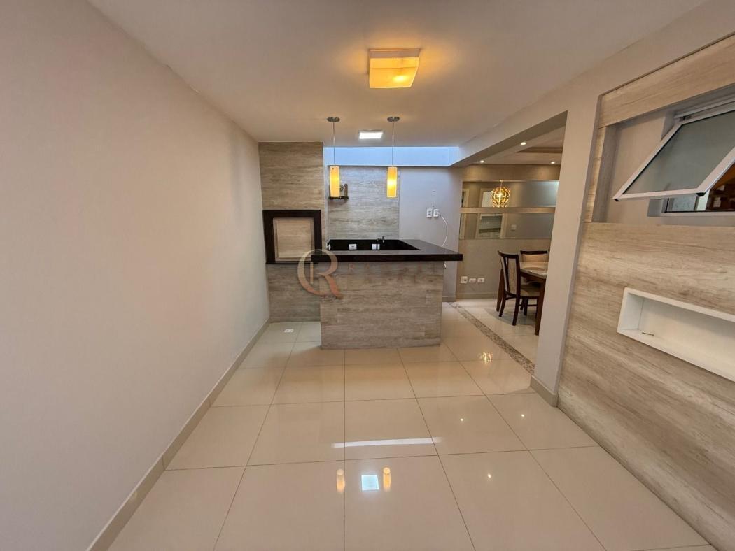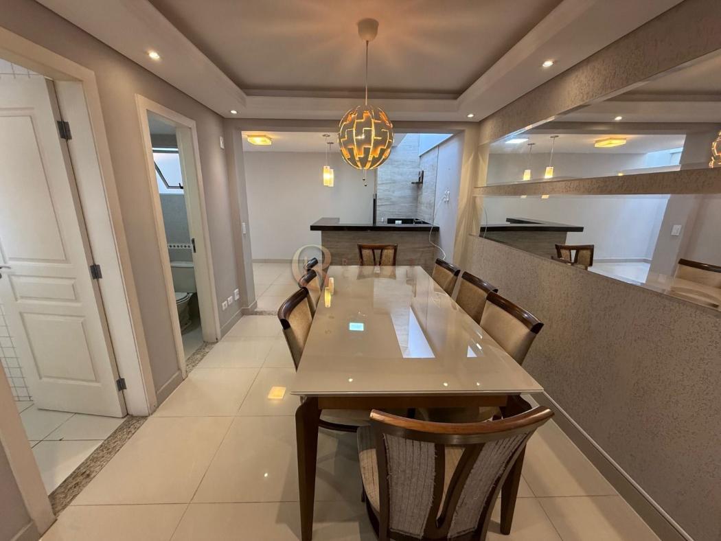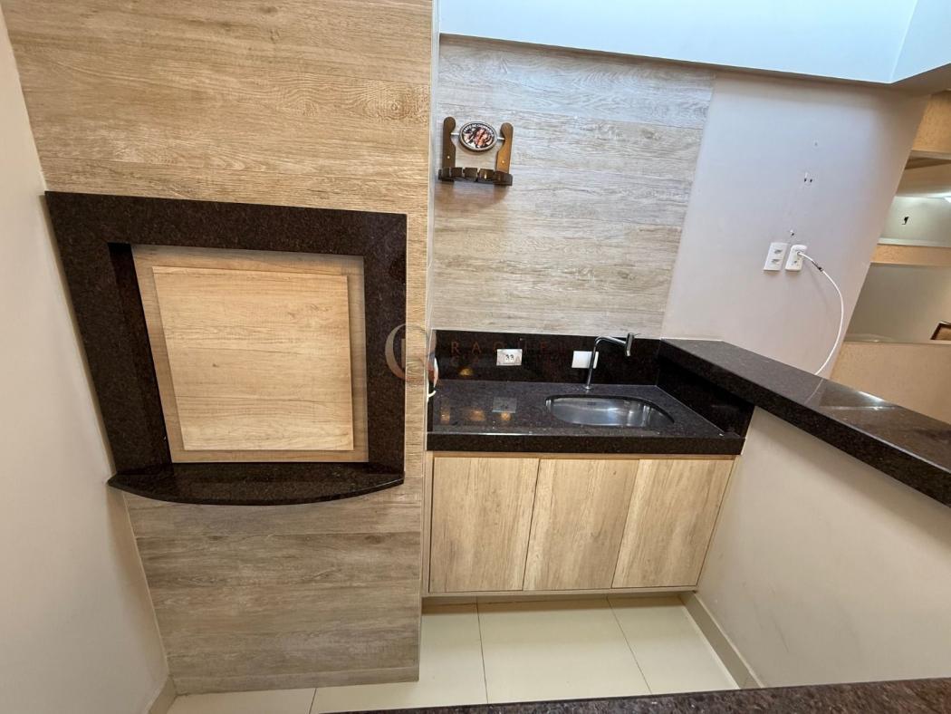 Térreo possui ampla sala para dois ambientes com rebaixo em gesso com lâmpadas embutidas, lavabo com pia em granito, cozinha toda com armários, tampo e pia em granito, lavanderia coberta e fechada com armário, churrasqueira coberta e fechada com pia de apoio, na frente possui 1 vaga de garagem coberta e 3 descobertas.